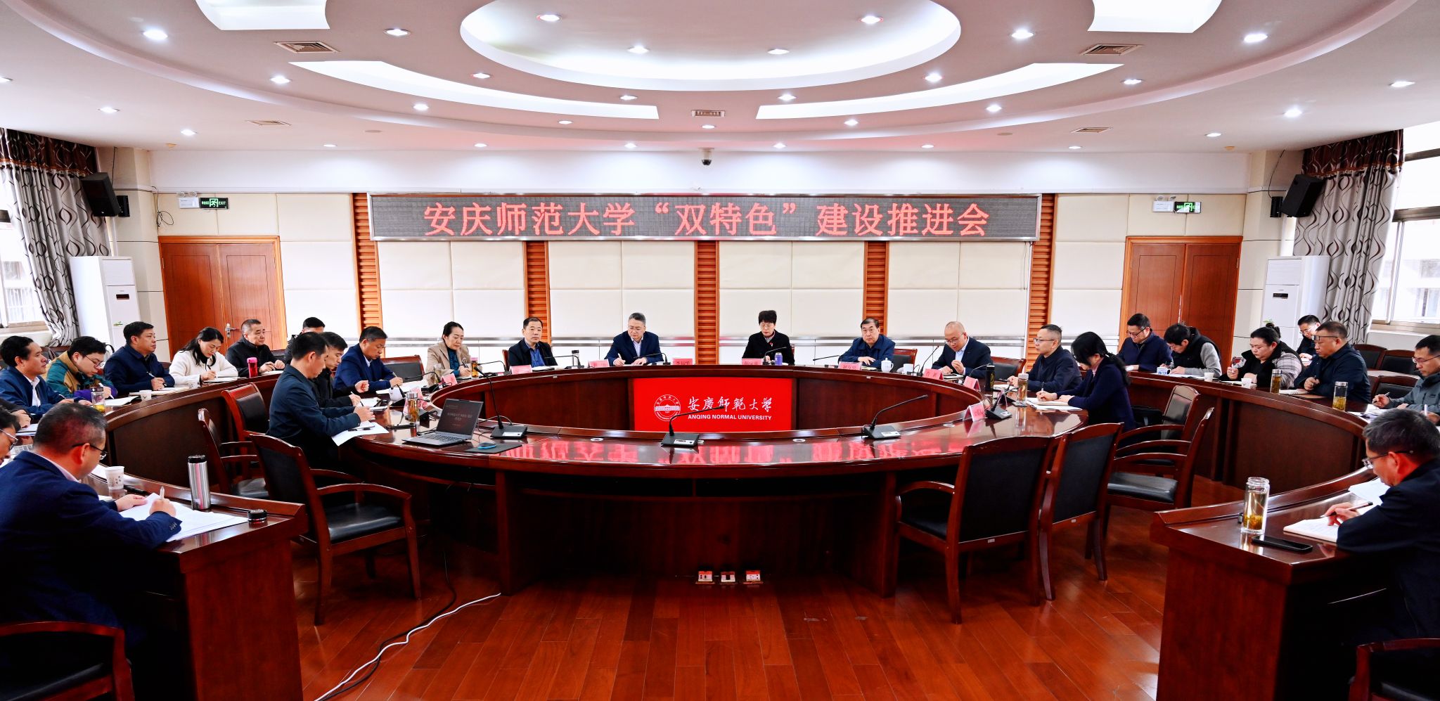 校长彭凤莲主持会议。她指出,“双特色”建设是省委省政府提升高等教育服务高质量发展能力的重要举措,是持续推进高等教育综合改革的有力抓手,也是增强学校整体实力的切入点和推进学科专业发展的着力点。她强调,要深化认识,高度重视“双特色”建设工作,切实把思想和行动统一到学校党委的决策部署上来,保持创先争优、担当作为的精神状态,步调一致朝着学校党委确定的建设方向努力前进。要紧扣目标,建立健全“双特色”建设机制,实施一把手负责制,身先士卒、靠前指挥,更好发挥“头雁效应”,着力构建“一级抓一级,层层抓落实”的工作机制,共同推动“双特色”建设项目各项任务落到实处。要聚焦实效,着力产出高水平建设成果,要制定可操作、可实现、可量化的建设方案,绘好项目“施工图”,全面统筹推进“双特色”建设、博士学位授予单位立项建设以及安徽省高峰培育学科建设等工作,着力产出更多高水平建设成果。