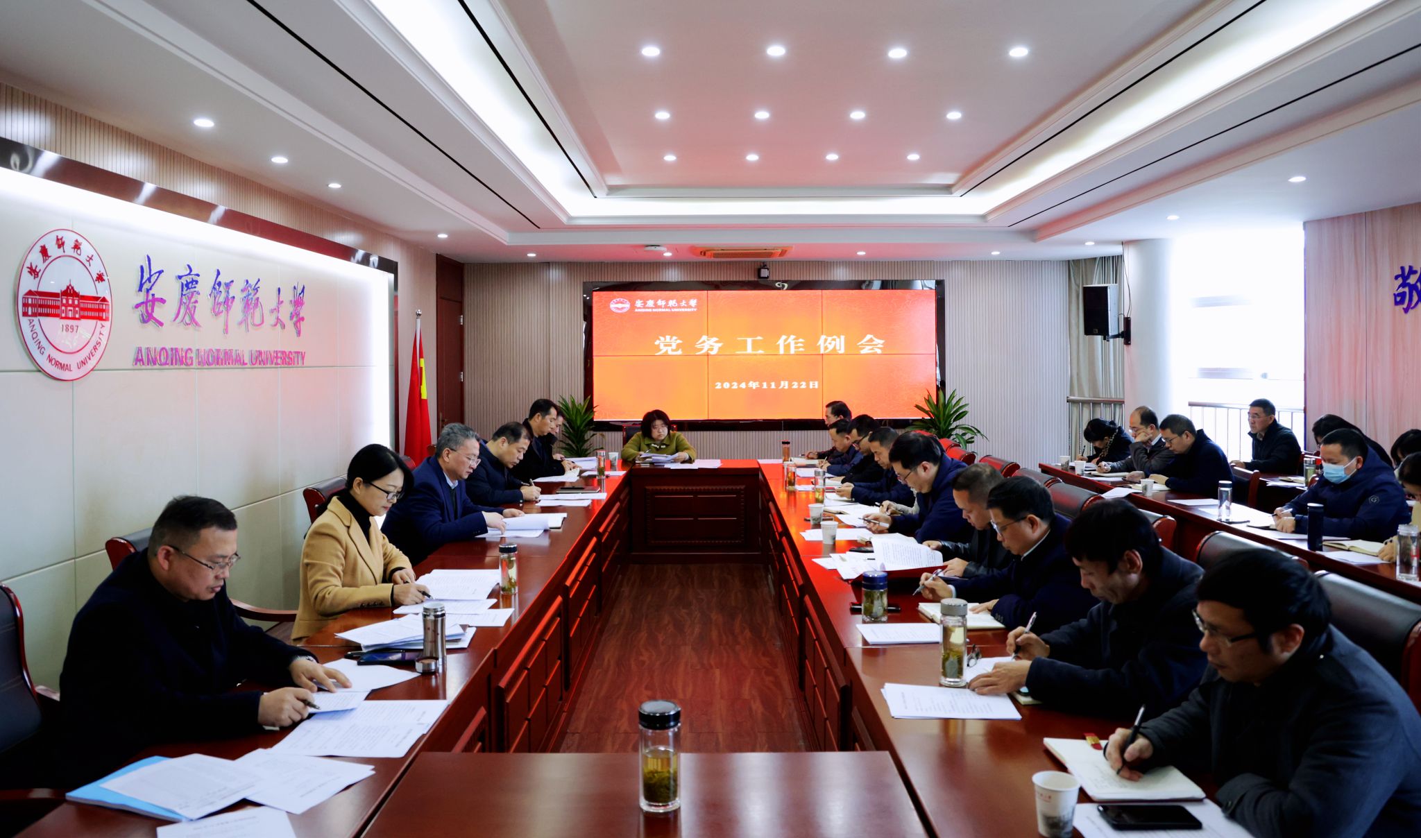 11月22日,学校召开党务工作例会。校党委书记李福华出席会议,校党委副书记崔明主持会议,校党委常委陈秀、张红飞、计裕人,各院级党组织、党群部门负责人参加会议。