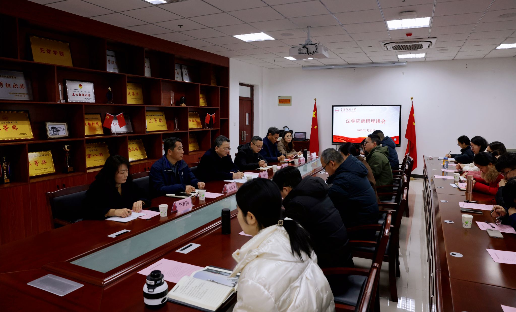2月20日,校党委书记李福华,校党委常委、副校长、校社科联主席徐晓宁,校党委常委张红飞一行赴法学院专题调研安徽省六尺巷工作法研究中心建设等相关工作。教务处、科研处、研究生院等单位负责人及法学院党政班子成员、党支部书记、教研室主任、安徽省六尺巷工作法研究中心全体成员、法学院各办公室负责人等教师代表参加座谈。